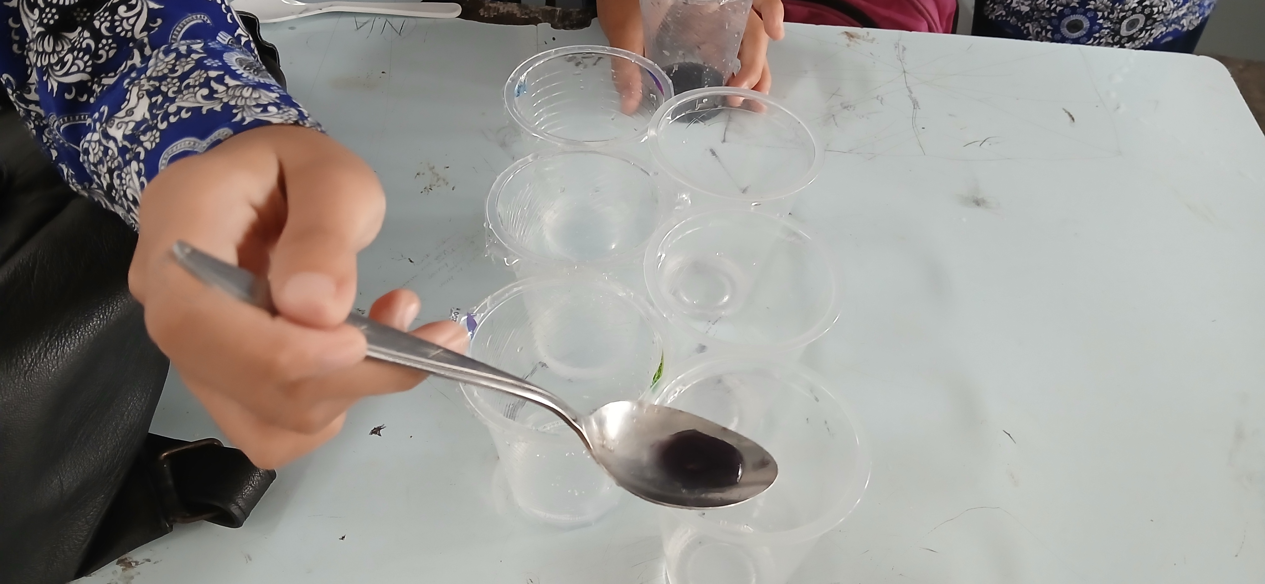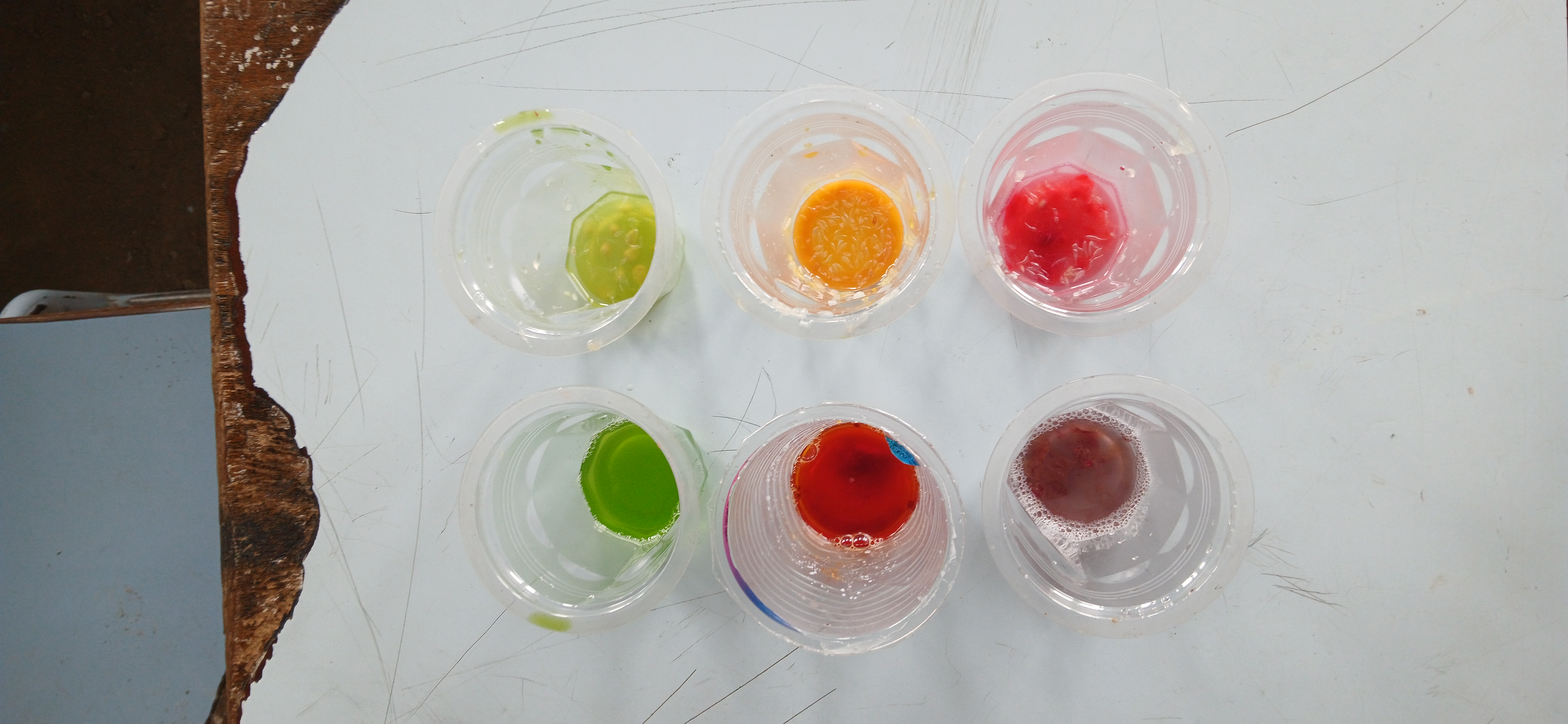 Kami menyiapkan tiga jenis larutan yang mewakili sifat kimia yang berbeda: cuka makan dan jeruk nipis untuk mewakili sifat asam, serta air sabun untuk mewakili sifat basa. Keajaiban dimulai saat ekstrak tumbuhan diteteskan ke dalam masing-masing larutan.